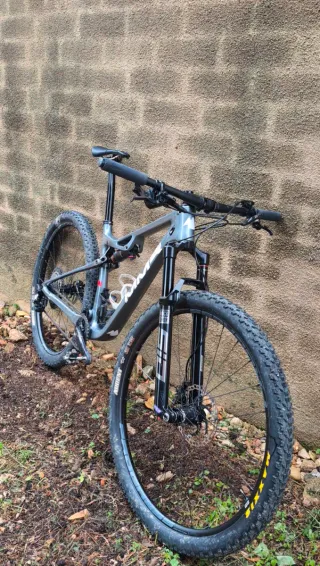 Cuadro de carbono muy ligero. Cadena, pastillas y disco de freno trasero nuevos, recién cambiados. Se hizo hace 3 meses el mantenimiento de la horquilla (100€) y se puso liquido a las cubiertas (tubeless 29”) Extras: Frenos shimano slx Horquilla fox 100m Grupo slx con patilla xt Talla l