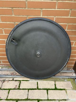 Rueda lenticular Covas de fibra de carbono para ciclismo. - Tamaño 700C. - Ancho de cubierta 25mm. - Llanta de carbono. - Acabado mate 3k,sin calcomanías -Banda de frenado de basalto para zapatas de carbono -Bujes Novatec para Shimano 11v shimano -Tubeless ready con neumático Pirelli P Zero TLR -Peso 1,5 kg (conjunto entero junto con líquido para tubeless y 4,5 psi) -La rueda tiene 4 años,sin golpes y muy bien cuidada,usada solo en competición.No ha dado un solo problema.
