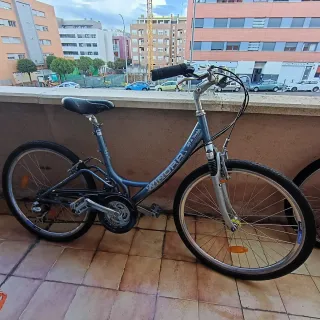 Se vende bicicleta de cuadro de aluminio, de llanta 26 pulgadas. Freno de disco mecanico delantero y freno de zapata trasero. Cambios shimano de 21 velocidades. Esta totalemente revisada y en funcionamiento, se vende por no usar. Fue comprada hace 10 años. Esta practicamente nueva, como se aprecia en las fotos. La bici se vende sin los portabidones, ni la bolsa bajo el sillin, y con pedales normales. Regalo cuentakilometros