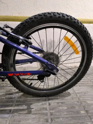Bicicleta Rockrider de 24 pulgadas, ideal para iniciarse en el ciclismo. - Cuadro de aluminio. - Frenos V-brake. - Cambio Shimano. - Suspensión delantera. Neumaticos nuevos, no tienen ni 1 km y las manetas de los cambios igual. El unico desperfecto es el sillin, se aprecia en la foto.