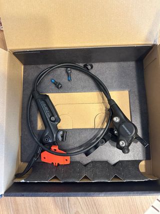 Freno Sram Level Ultimate En perfecto estado de funcionamiento Procede de despiece Sworks 2023 Tope de gama Sram con maneta de carbono, potencia de frenado y máxima ligereza Compuesto de maneta de freno, cableado y pinza de freno listo para funcionar No incluye abrazadera manillar Es el delantero, se puede montar directamente Al ser ambidiestro, puedes ponerlo como trasero si dispones de cable posterior más largo