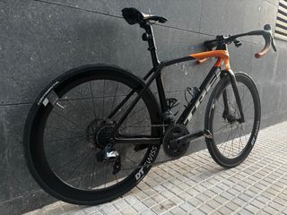 Bicicleta de carretera Trek Émonda SL7 con grupo SRAM Force eTap AXS electrónico 12 vel y con potenciometro. Talla 52 equivalente a una S - Cuadro de carbono ligero. - Frenos de disco hidráulicos. - Ruedas DT Swiss ARC 1400 bujes 240 y rodamientos ceramicos.. Sillin Prologo Scratch M5, medida 250X140 Manillar Easton Ec70 aero SI LAS QUIERES CON ESTAS LLANTAS (3870€) En perfecto estado ,solo marca que se aprecia en la foto - Color naranja y negro. EL PRECIO con las ruedas de origen las bontrager aeolus pro 37 carbono. El precio seria de (2870€) -No se hacen envios