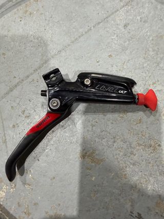 Freno de disco hidráulico trasero SRAM Level Ultimate. Longitud cable 2000mm. Carbono. - Color: Rojo y negro. - Incluye maneta y pinza.