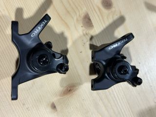 Se vende Juego de pinzas mecánicas para frenos de disco de bicicleta. estan en perfecto estado - Marca Tektro. - Diseño compacto - Color negro.