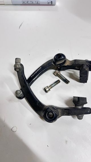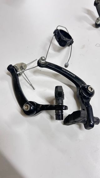 Conjunto de frenos V-Brake Tektro en excelente estado. - Mecanismo de liberación rápida. - Pastillas de freno de goma. - Cuerpo de aluminio. todo por 10€