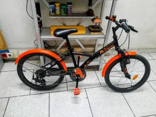 Bicicleta Niño BTWIN en color naranja y negro, ideal para los más pequeños. - Cuadro de acero. - Ruedas de 20 pulgadas. - Frenos V-brake. - Guardabarros delantero y trasero. - Luces Led atrás y adelante. - NO HAGO ENVÍOS.