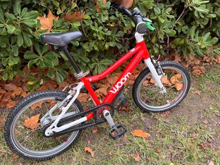 Bicicleta infantil Woom 3 (16") en color rojo. Solo un propietario, está en muy buen estado, solo algún rozón en sillín y horquilla del uso. Mantenimiento recién pasado con frenos en buen estado. La más ligera del mercado (5.8kg). Diseñada para los más pequeños, cuadro bajo, ligera y muy fácil de manejar. La posición erguida de la Woom 3 ayuda a los niños a mantener el equilibrio y les permite tener siempre a la vista todo lo importante. - Cuadro de aluminio 6061. - Frenos V-Brake y manetas adaptadas para niños. - Sillín ajustable en altura. - Ruedas de 16 pulgadas. - Altura sillín: 49 cm – 59 cm