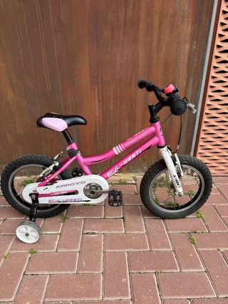Bicicleta infantil de 14 pulgadas, ideal para los más pequeños. - Color rosa - Incluye ruedines de apoyo - Cadena protegida -Frenos V-brake