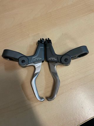 Par de manetas de freno Shimano XTR M-950 ,para freno V-brake. - Acabado en color gris y plata.