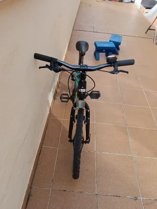 🚲 Bicicleta infantil Rockrider 24” Ideal para niños/as de 6 a 12años (135–150cm). ✅ Cuadro de aluminio, suspensión delantera, frenos V-Brake. ✅ Ruedas con cubiertas de taco, reflectores, en buen estado. 🎨 Color negro con horquilla naranja, muy llamativa. 📍Entrega en mano en [tu zona]. 💶 Precio negociable