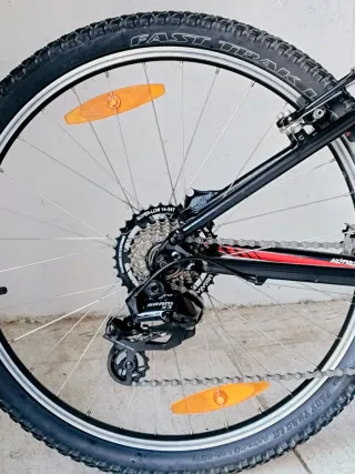 Bicicleta de montaña marca Suntrack. - Cuadro de aluminio. - Ruedas de 26 pulgadas. - Frenos V-Brake. - Cambio Shimano. - Portabultos trasero.
