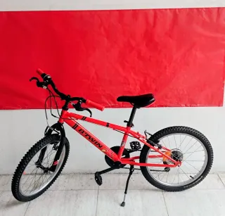 Bicicleta infantil B'TWIN Rockrider Racing Boy en color rojo. Está limpia y con revisión mecánica. - 6 marchas - Ruedas de 20 pulgadas. - Frenos V-brake. - Sillín ajustable. - color rojo Para chicos de 5 a 9 años.