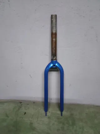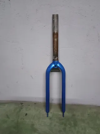 Horquilla de bicicleta 700 de color azul brillante . - Diseño de horquilla doble. - Acabado pintado en azul. - rueda 700 o 28 diámetro del tubo 1 1/8 largo de la pipa 24cm para freno v-brake, recién pintada.