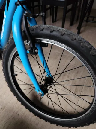 Bicicleta infantil B’Twin 20 pulgadas, ideal para niños que ya pedalean con seguridad. Perfecta para paseos, parque o iniciarse en la bici. • Ruedas 20" • Frenos tipo V-Brake • Cuadro ligero y resistente • Neumáticos de montaña para buen agarre Bicicleta revisada y puesta a punto por mecánico profesional de ValenciaInBike, lista para usar. Ideal para niños aprox. 6-9 años. 📍 Se puede ver y probar en ValenciaInBike (Valencia). Tenemos más bicicletas revisadas disponibles.