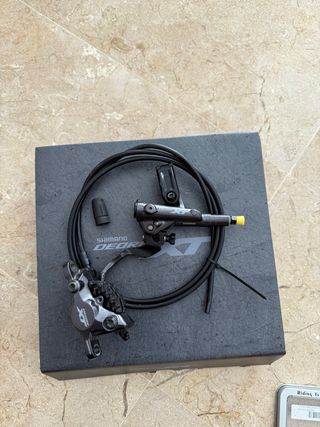 Conjunto de frenos y cambios Shimano XT para bicicleta. - Componentes de alta gama para ciclismo. - Diseño robusto y fiable.