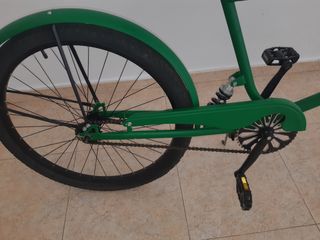Bicicleta estilo playero en color verde. - Cuadro de diseño curvo. - talla grande (L) - Sillín negro. - Manillar curvo. - Ruedas negras 28 pulgadas -Suspension trasera -Freno trasero contrapedal y delantero de herradura. - Guardabarros delantero y trasero.
