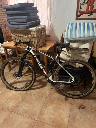 Bicicleta Specialized S-Works rígida, ideal para montaña. - Cuadro de carbono. - Ruedas de 29 pulgadas. - Frenos de disco hidráulicos. - Transmisión Shimano. - Horquilla RockShox.