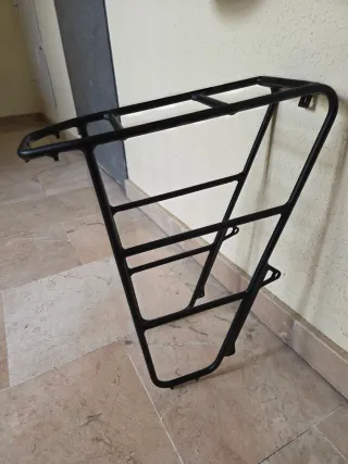 Portabultos delantero para bicicleta, de color negro.Para bicicleta con freno de disco - Fabricado en aluminio resistente.Max 23kg - Diseño tubular. - Ideal para transportar equipaje.