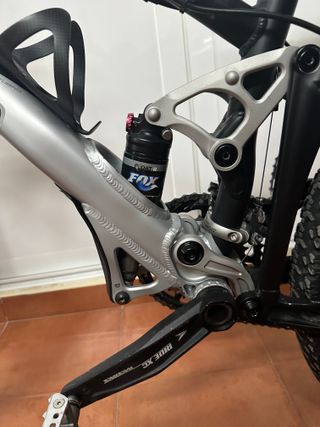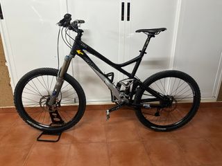 Bicicleta cuidada que se vende por cambio por otra más nueva. Año 2009 Horquilla FOX Float Talas 32 150mm en mal estado, con retenes recién puestos pero pierde aire. Amortiguador FOX Float R. Frenos Shimano XT. Pastillas bastante nuevas. Cambios Sram X-7. Ruedas de 27" con cubiertas poco usadas. 9 velocidades y 3 platos. Cadena con necesidad de cambio.