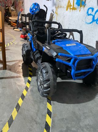 Buggy infantil de color azul, perfecto para que los más pequeños disfruten. - Diseño deportivo. - Ruedas todoterreno. - Asientos cómodos. - Radio con bluetooth - 3 velocidades - mando a distancia para controlarlo tu o frenarlo por emergencia Muy nuevo solo 4 usos salio nuevo por 420
