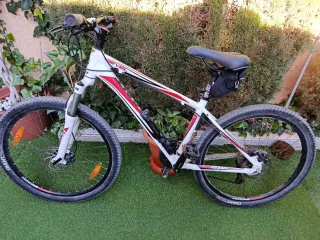 Bicicleta todoterreno unisex en color blanco. Ideal para explorar diferentes terrenos. Talla L 27.5 pulgadas . - Cuadro de aluminio. - Suspensión delantera. - Frenos de disco. - Cambio Shimano.