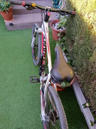 Bicicleta Giant en talla M, en buen estado. - Cuadro blanco con detalles en rojo y negro. - Ruedas Giant. - Frenos de disco.