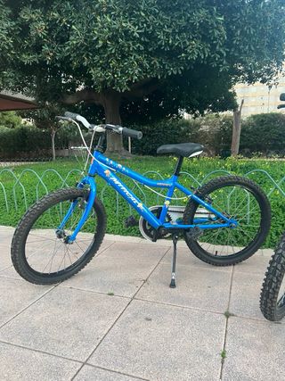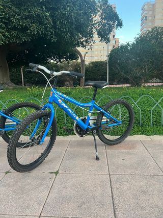 Bicicleta infantil de color azul, ideal para los más pequeños. Dos bicicletas nlño , una x 60, dos x 100 - Ruedas de 20 pulgadas. - Frenos delanteros y traseros. - Sillín ajustable. - Incluye pata de cabra.