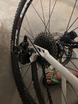 ruedas 29” frenos magua mt8 suspension lefty 8 plato 32, cassette xt deore 10/51 cambio shimano xt deore 12v cubiertas delantera ground control 29x2,35 trasera fast track 29x2,35 pastillas de freno galfer nuevas rodamientos pedalier recien cambiados. Escucho ofertas, tambien en venta sin frenos magura, se cambian por shimano xt deore en buen estado y muy bien cuidada, arañazos normales de estar utilizandola durante 3 años
