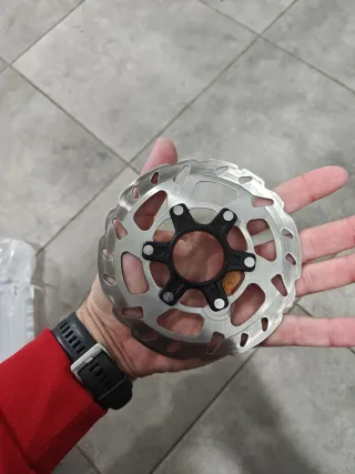 Dos discos tektro auriga uno de 180 mm y otro de 160 mm.