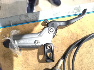 Freno de disco Sram Level T en color gris. - Palanca de freno Sram. - Cable de freno incluido. - Modelo Level T. - Latiguillo trasero a 135cm aprox (venían en una bici talla S) - Pastillas prácticamente nuevas. No atiedo regateos ni ofertas.