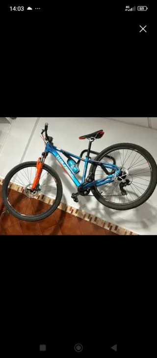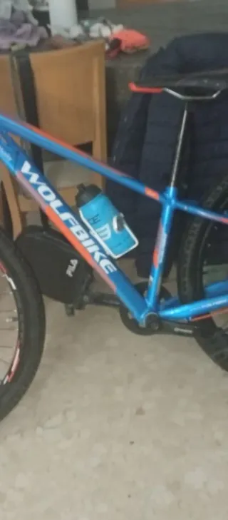 Bicicleta de montaña Wolfbike en color azul y naranja, con ruedas de 27.5 pulgadas. - Cuadro de aluminio. - Horquilla delantera. - Frenos de disco. - Portabidón incluido.
