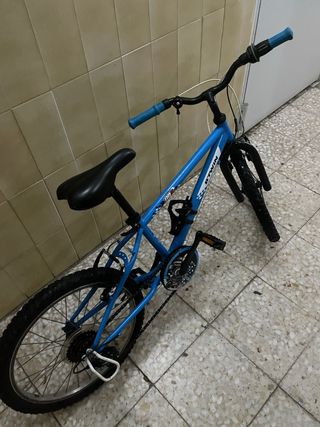 Bicicleta infantil de color azul, marca Btwin.está perfecta,sillín nuevo,camaras de ruedas nuevas. Bueno todo esta en perfecto estado. - Ruedas de 20 pulgadas. - Frenos delanteros y traseros. - Sillín ajustable.