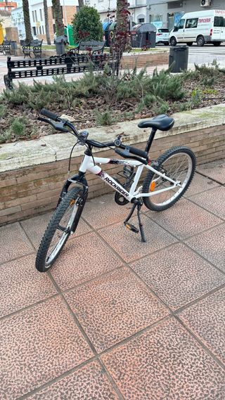 Bicicleta Rockrider de 24 pulgadas, ideal para jóvenes ciclistas. - Cuadro de aluminio ligero. - Frenos V-brake. - Cambio Shimano de 6 velocidades. - Suspensión delantera.
