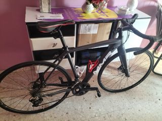 bicicleta de carretera de aluminio válida también para andar por pistas, esta montada en shimano claris de 8 velocidades, frenos de discos mecánicos, lleva unas cubiertas de 32 mm. la compré y la he utilizado para ir de casa al trabajo, está practicamente nueva. se entrega sin pedales.