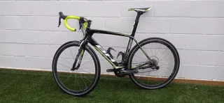 Bicicleta de carretera BH G6 Pro con un diseño aerodinámico y ligero. - Cuadro full carbon. - Ruedas de perfil 30 - Color negro y verde lima. - Componentes Shimano Ultegra tanto frenos como transmisión. Platos 50/34 y piñonera 32/11 de 11 velocidades - Talla L. Para ciclista de entre 1'80 m y 1'84 m - Ruedas Vision de carbono y pista de aluminio Se vende por haberme regalado otra superior en navidad. Funciona a la perfección.