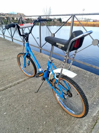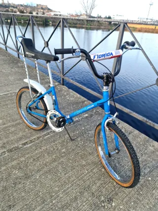 Bicicleta clásica BH Florida Bicicross en color azul de los 80'. Un modelo icónico para disfrutar. componentes en muy buen estado. -RUEDAS ORIGINALES AL 95% - Llantas 20" perfectas. -FRENOS BH MADE IN SPAIN AL 90% - Empuñadura BH madera in Vitoria. - Sillín tipo banana con respaldo - Guardabarros delantero y trasero. - cadena 1 velocidad bh Original sin óxido. -NINGUNA HOLGURA, NO HAY OTRA EN TAN BUEN ESTADO. En muy buen estado de conservación. Puedo llevarla al posible comprador en Extremadura. Consultar.