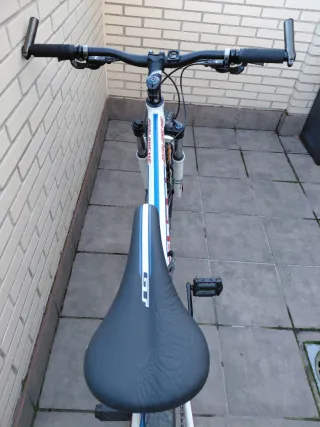 Bicicleta de montaña de la marca Megamo en color blanco. Ideal para disfrutar de rutas y senderos. - Cuadro de aluminio. - Ruedas de 26 pulgadas. - Frenos de disco. - Cambio Shimano. - 21 velocidades - Talla XS - 4 meses de uso Vendo porque me confundí en la talla y ya le ha quedado pequeña a mi hijo.