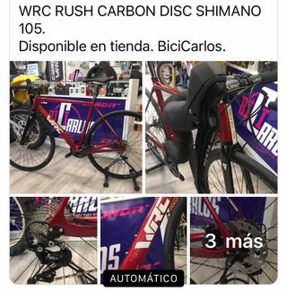 Bicicleta de carretera WRC Rush Carbon Disc con grupo Shimano 105 Talla 53. - Estrena bici a precio de ocasión. - Cuadro de carbono Torayca. - Frenos de disco. - Grupo Shimano 105. - Disponible en tienda BiciCarlos. - Entrega en tienda con su factura para activar garantía y manuales. - PRECIO. 1.499,00€ !!!!!!