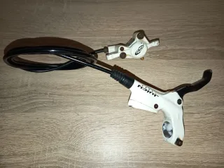 Conjunto de frenos hidráulicosAvid Juicy 3 en buen estado, con alguna marca de uso. - Color blanco. - Latiguillo delantero 75cm y trasero 130cm. Pastillas en buen estado. Listos para montar.