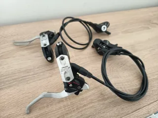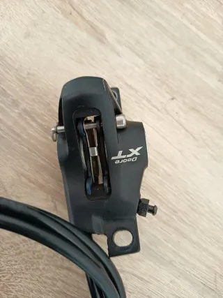 Conjunto de frenos hidráulicos Shimano Deore XT en buen estado. Modelo 775. Funcionan correctamente. Pastillas en buen estado. Longitud de latiguillos 78/141 cm. - Palancas de freno de aluminio. - Cuerpo de freno de composite. - Cableado incluido.