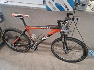bicicleta MTB ktm talla S, tamaño de rueda 26 de radio, montada en XT ruedas mavic, suspensión rock shok, discos de frenos nuevos y pastillas.