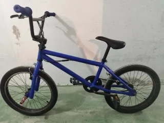 Bicicleta BMX de color azul, lista para rodar. - Ideal para trucos y saltos - Manillar negro. - Sillín negro. - Ruedas negras. - Se incluye pegs - Cámara recién cambiada - Freno delantero habría que revisarlo.