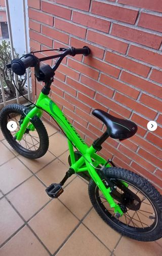 Bicicleta de niño en color verde brillante. Perfecta para iniciarse en el mundo del ciclismo. Para niños de 4 años - Ruedas de 16 pulgadas. - Frenos delanteros y traseros. - Sillín ajustable en altura. - Pedales antideslizantes.