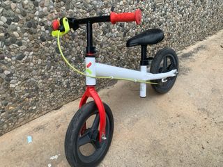 Bicicleta infantil sin pedales. Ideal para los primeros pasos e ir cogiendo equilibrio. Con freno trasero para más seguridad. Funciona correctamente el freno. Bici en buen estado.