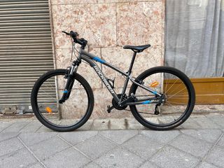 Bicicleta de montaña Rockrider con ruedas de 27,5 pulgadas. - Cuadro de aluminio. - Suspensión delantera. - Frenos de disco. - Cambio Shimano.