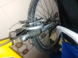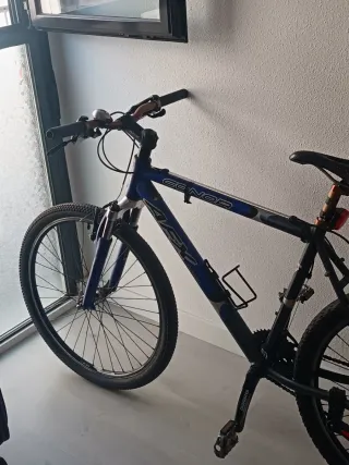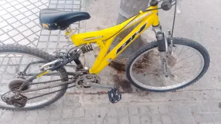 Bicicleta de montaña en color azul. - Cuadro de aluminio. - Suspensión delantera y trasera. - Frenos de disco. Incluyo las piezas de repuesto que se ven en las fotos. La vendo por falta de tiempo para usarla. Tiene sus cosas por los años pero la bici funciona.