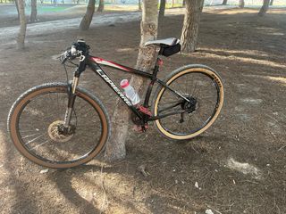 Bicicleta de montaña BH de color rojo. - Cuadro de carbono. - Ruedas Maxxis 29” - Frenos de disco. - Cambio shimano deore XT - Orquilla Rock Shox recon - Bloqueo suspensión delantera Usada 4-5 veces, en perfecto estado