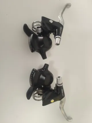 Conjunto Manetas de cambio y freno Shimano Alivio para 3x7 velocidades. Se limpiaron revisaron y lubricaron para su correcto funcionamiento y posterior venta. - Compatibles sólo con sistemas de 3x7 v - Diseño ergonómico para un agarre cómodo. - Materiales resistentes para mayor durabilidad.