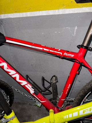 Bicicleta MMR Kuma de adulto, ideal para iniciarse en el ciclismo. La bici ha tenido un uso de 2 días por semana durante un año y medio por un grado medio de deporte. Desde ahí no se utiliza. Le toca mantenimiento de pastillas, engrasar cadena, regular desviador y posiblemente purgar frenos. De ahí que el precio sea ligeramente negociable. - Cuadro de aluminio. - Frenos de disco. - Ruedas de 26 pulgadas.