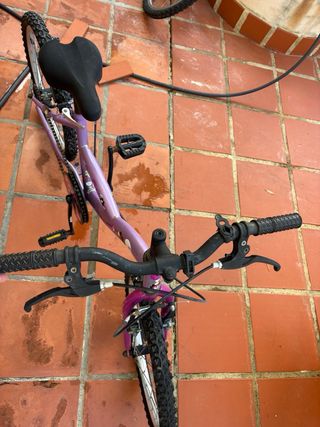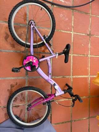 Bicicleta infantil de color morado, ideal para los más pequeños. - Ruedas de 20 pulgadas. - Frenos delanteros y traseros. - Sillín ajustable. - Cadena protegida. -sin luz trasera